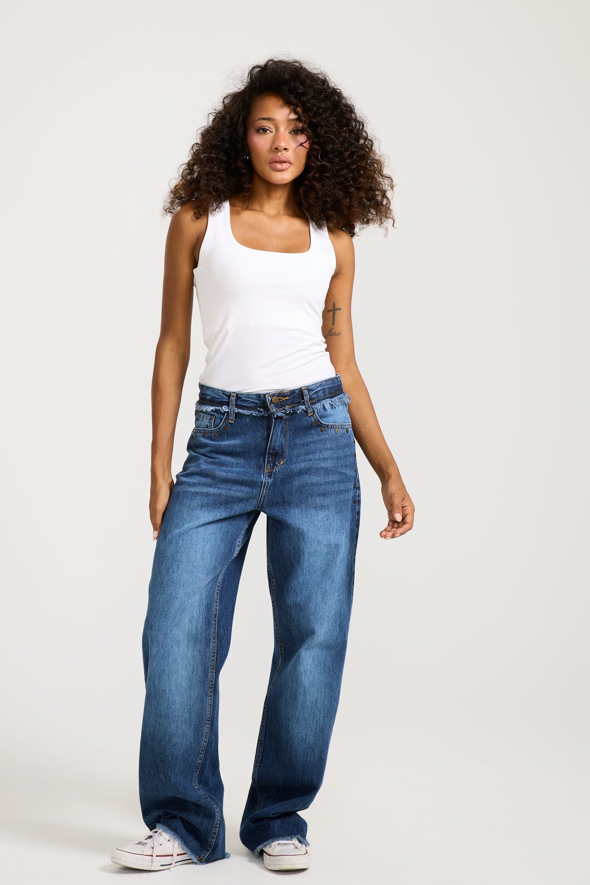 Unfinished Studded denim Dark Wash