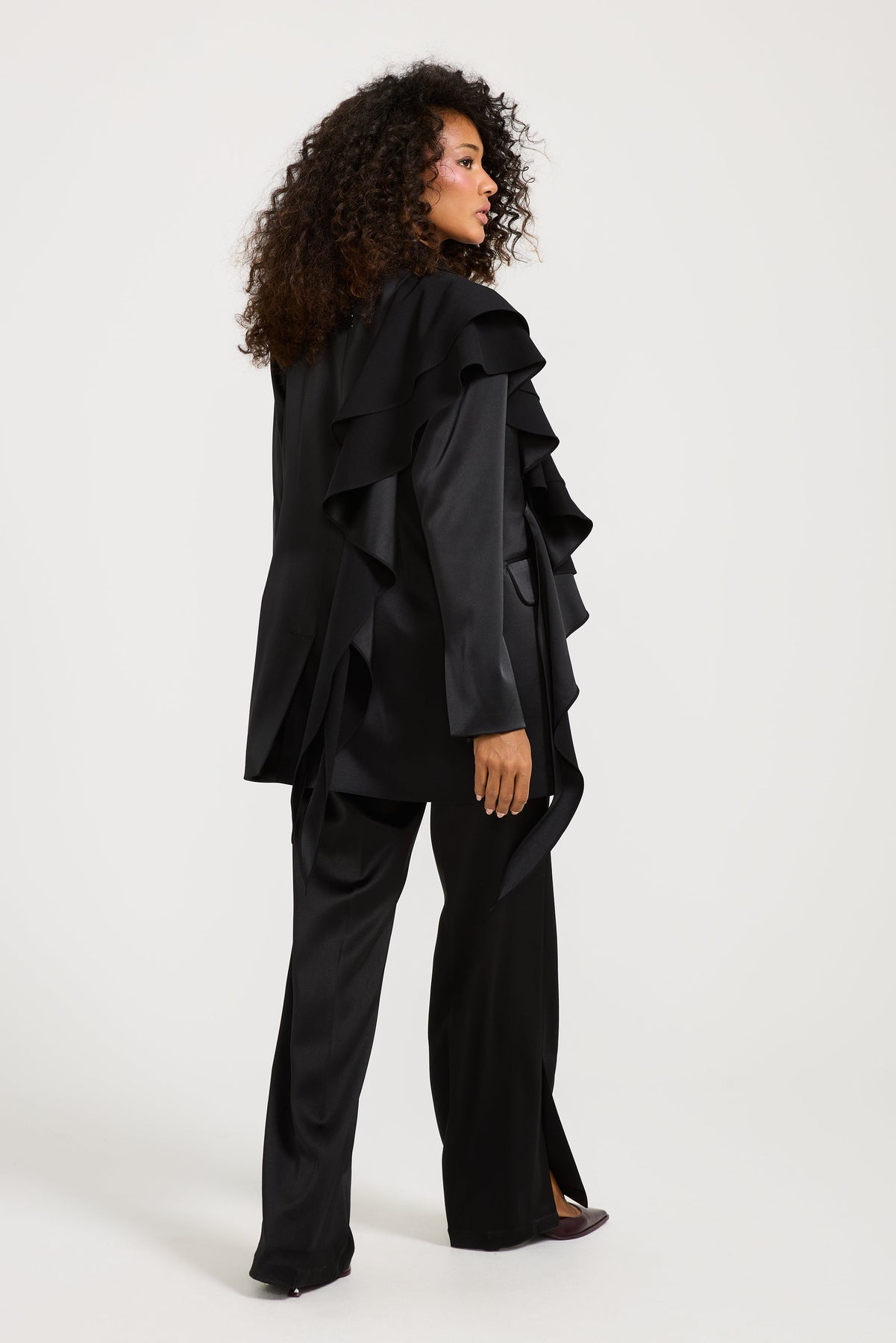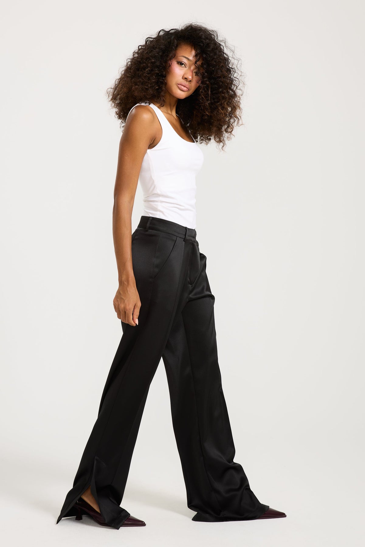These pants are classic and special through the rich satin material, and feature open sides at the bottom