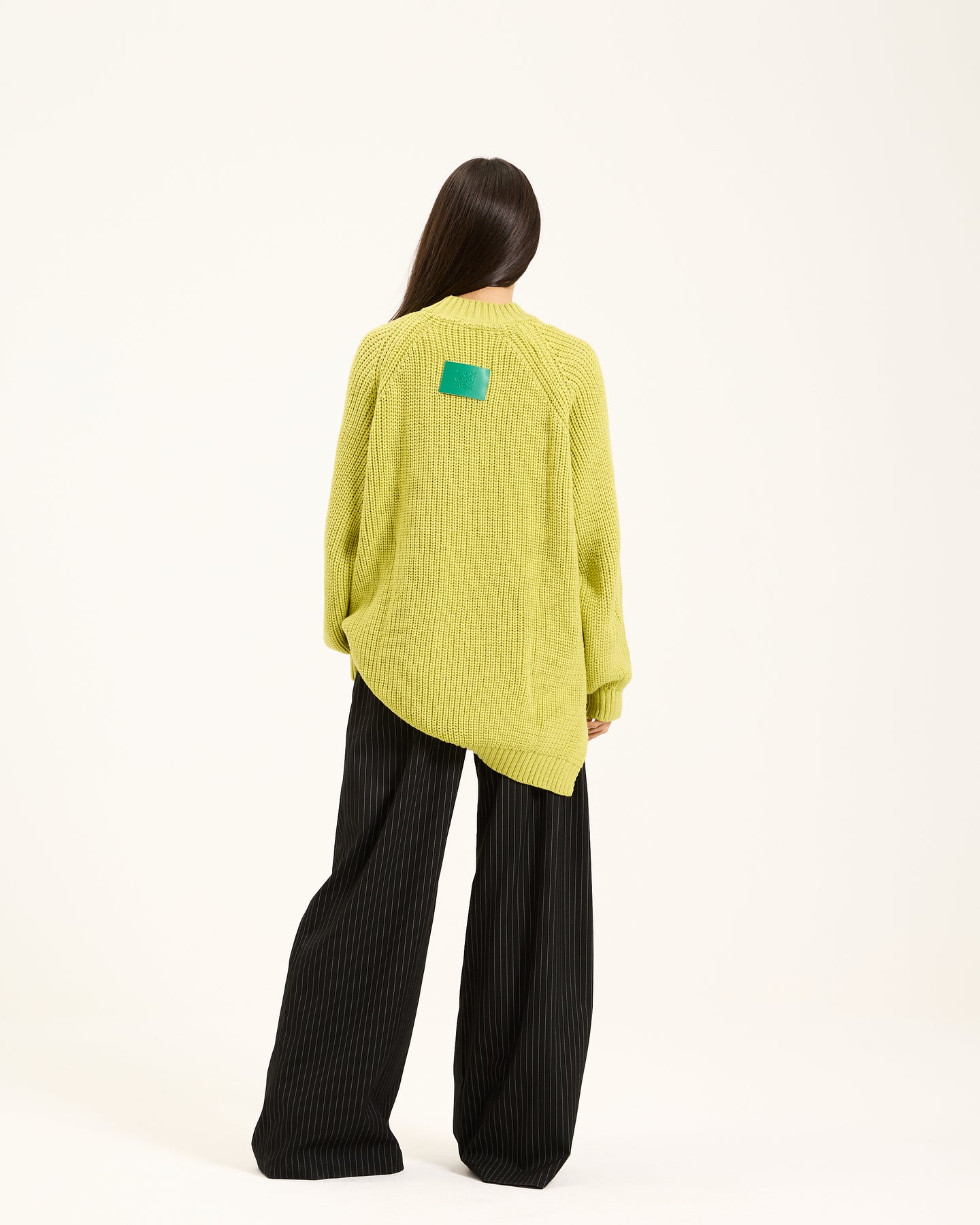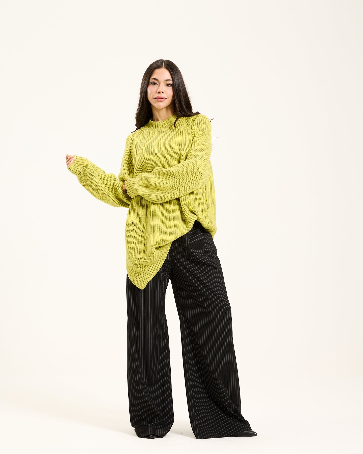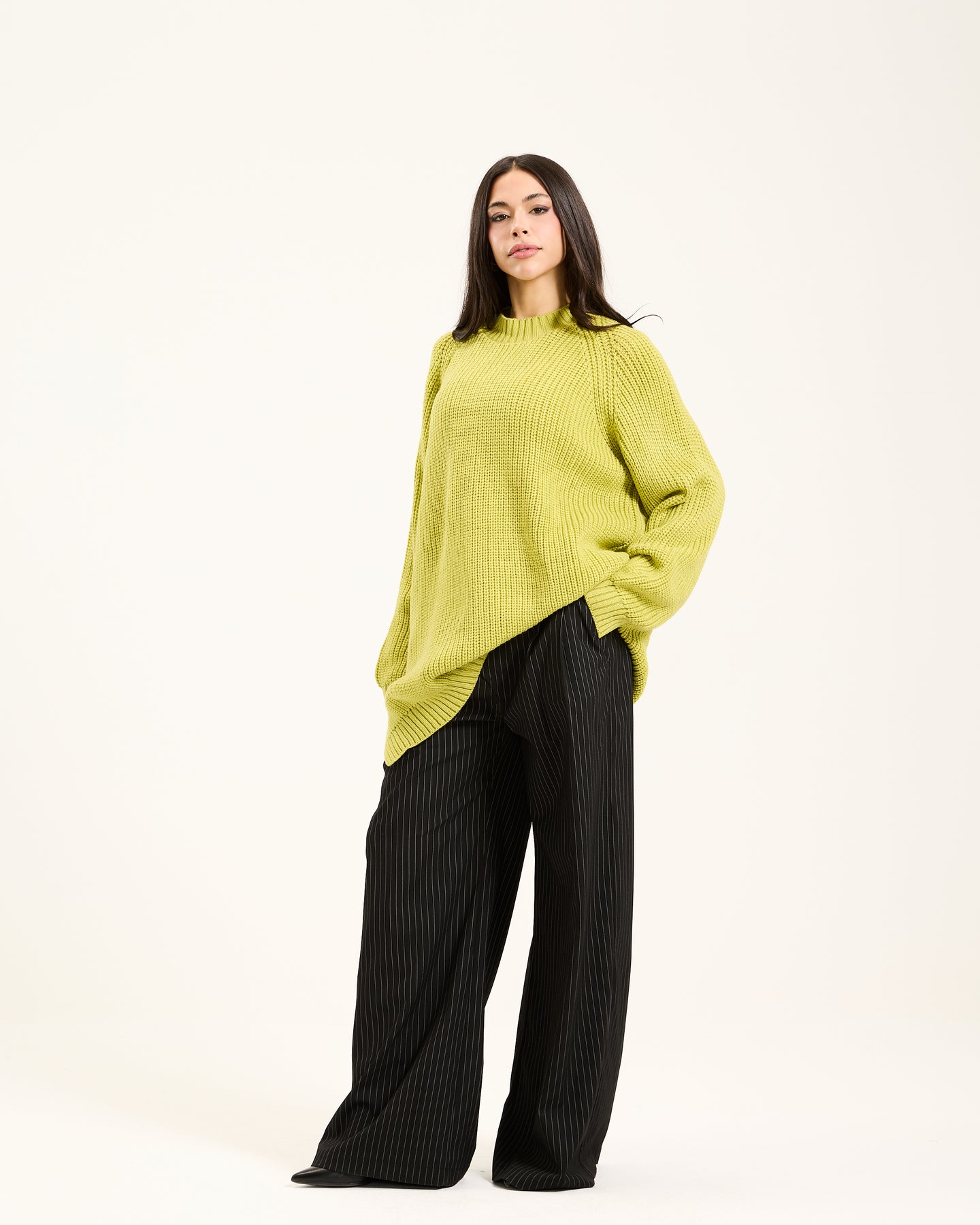 This oversized pullover has a relaxed fit and is knitted, giving it a cozy look. It has a classic crew neckline and drooped shoulders. Style it up or down for a comfortable yet stylish option this winter.