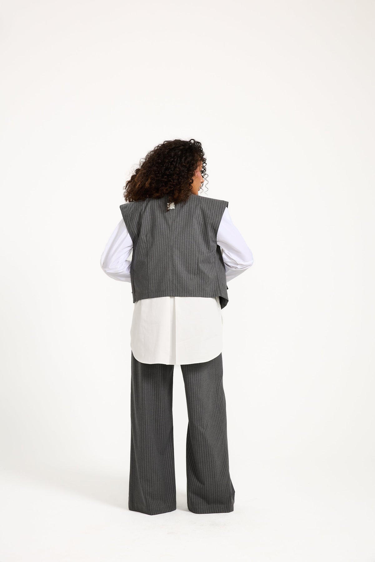 This waist coat is classic yet different with the striped and the crossover