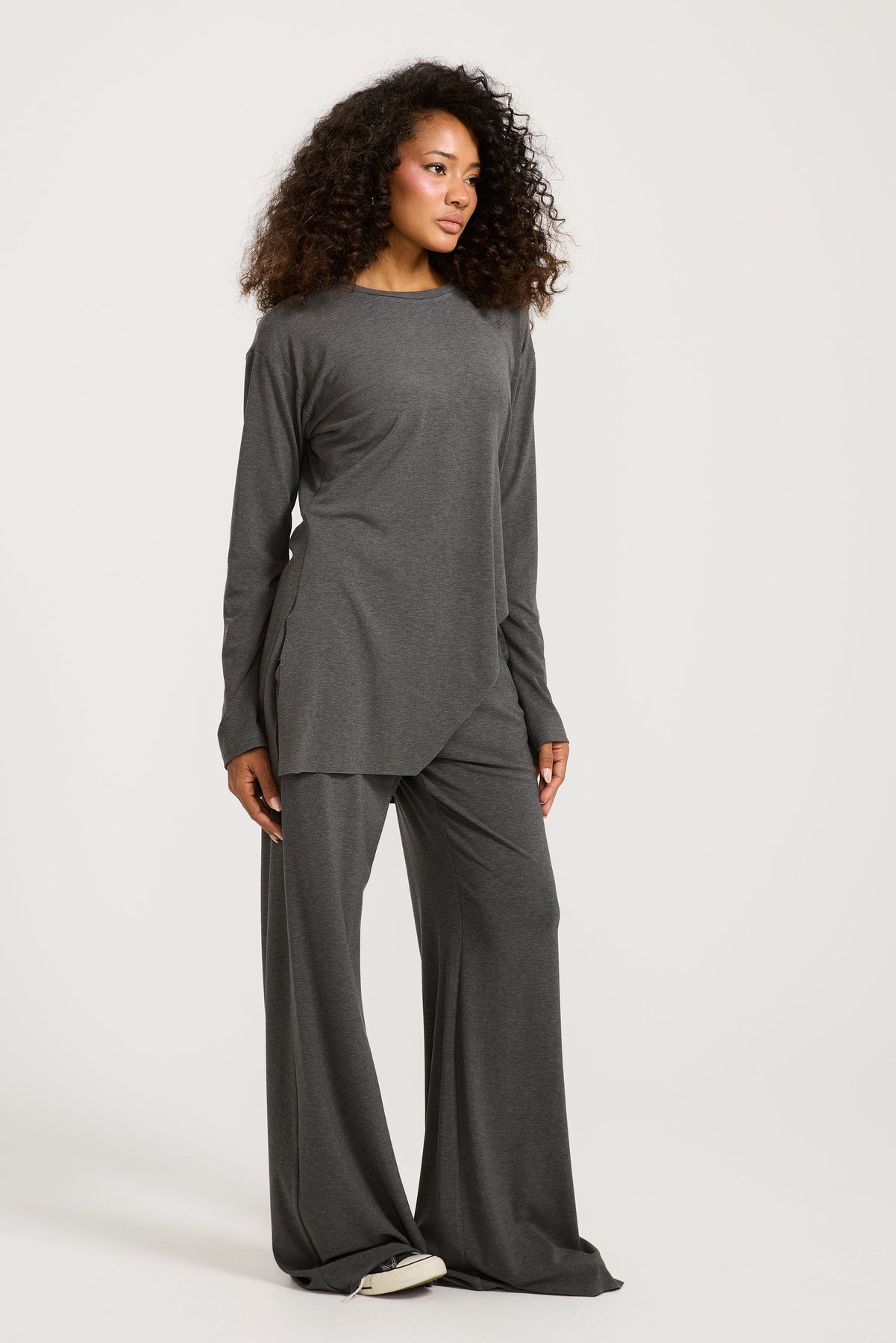 Asymmetrical Side Cut Grey Top